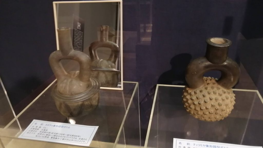 今回、BIZEN中南米美術館でたくさんの展示物を見るとともに、森下館長から説明や笛吹ボトルの実演をしていただくことができました。