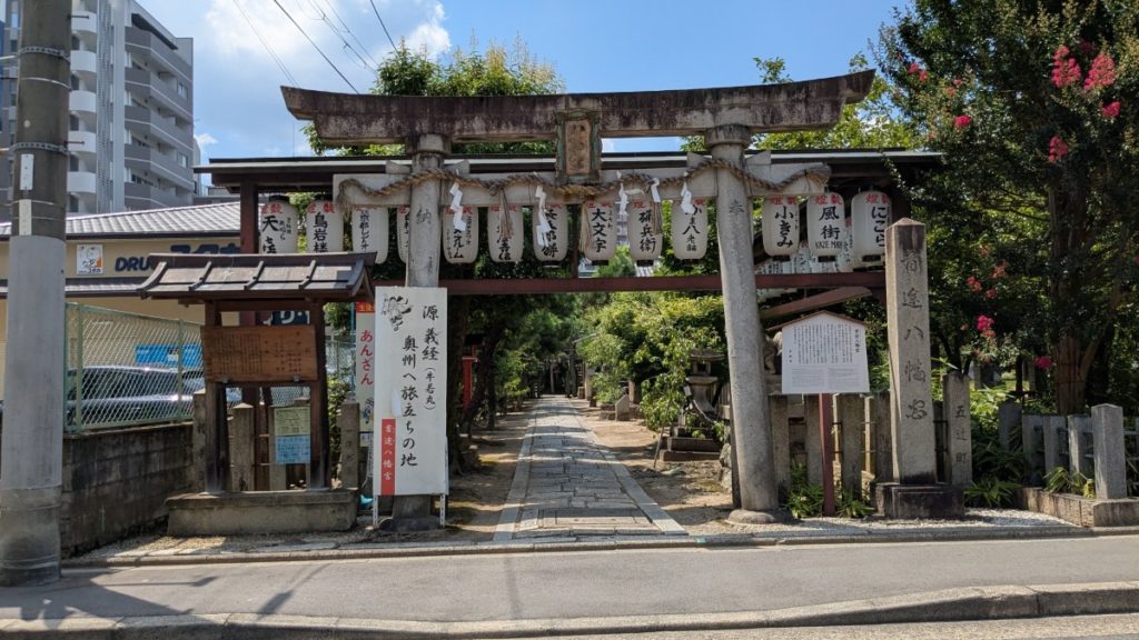 清和源氏は貞純親王から源満仲、源義家、源頼朝と続く、武家のメインストリームとなった系統で、義経も清和源氏の系統です。そういうこともあって、鞍馬寺を出た義経は内野八幡宮に参拝したのかもしれません。