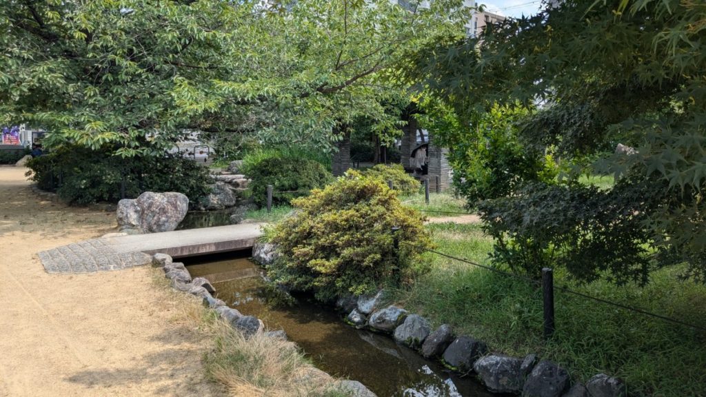 神社の横は桜井公園です。小川が流れていて、木々も多く庭園のような雰囲気があります。