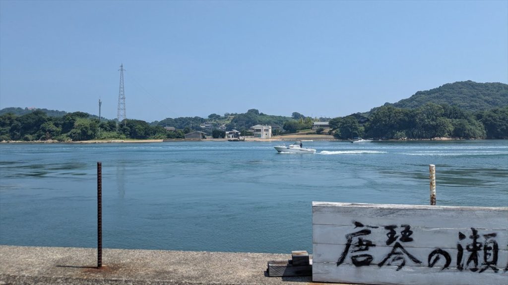 海峡の幅は230~400メートルで、大潮の引き潮時には渦ができるほどの流れとなるそうです。この流れの速さから、牛窓は、船の進行に有利な方向に潮が流れるのを待つ「潮待ち」の港とされてきました。