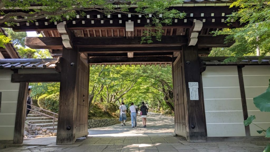 きぬかけの路を渡り、先に進むと延宝8年(1680)に建立され、江戸時代中期に再建されたという山門です。