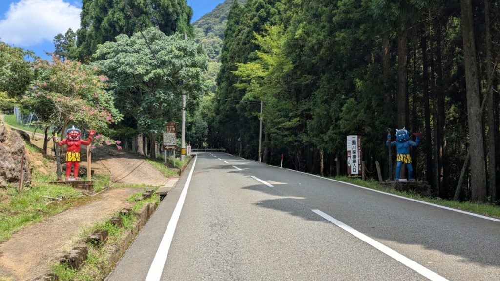 鬼が出迎えてくれる道は勾配もさほど急ではなく、貧脚ヒルクライマーの私でも登ることができました。