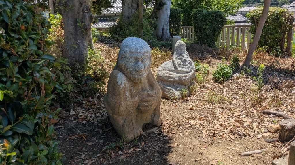 吉備姫王の墓域にある4体の猿石は欽明天皇陵の南側の水田から掘り出されたもので、「女」「山王権現」「僧」「男」と名付けられています。