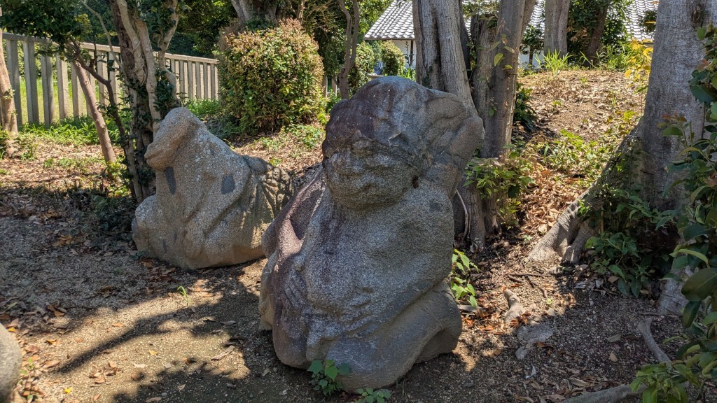 形がユニークです。亀石と名付けられていますが、カエルにも見える形をしています。愛きょうのあるカメという感じです。
