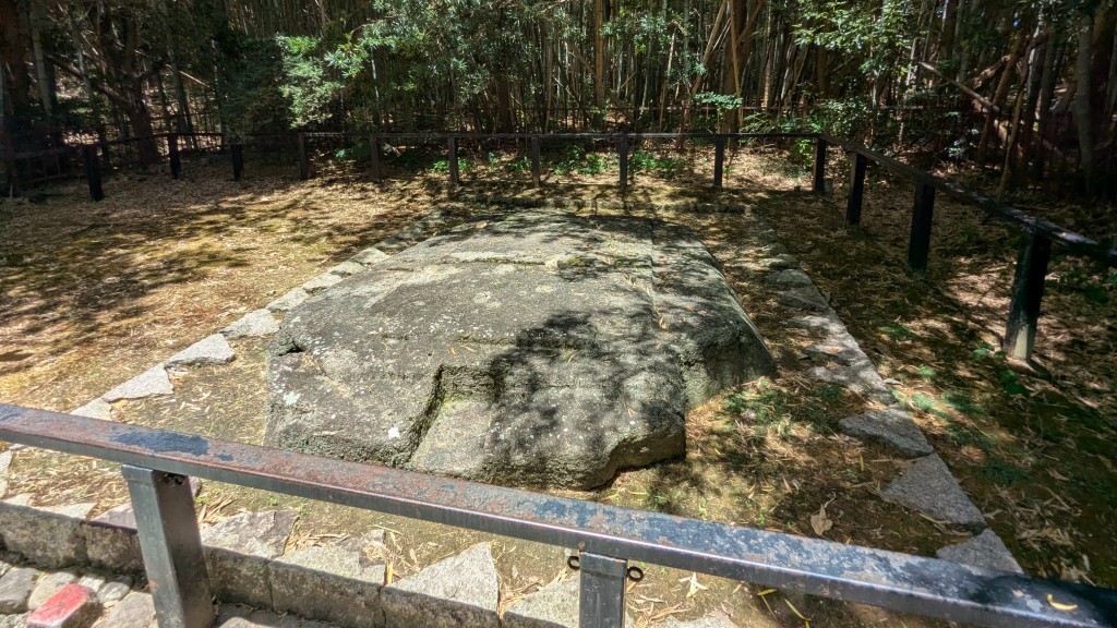 この石の用途については、この地に築造された益田池の台石とする説、横口式石槨とする説、占星台の基礎説、物見台説があるそうです。