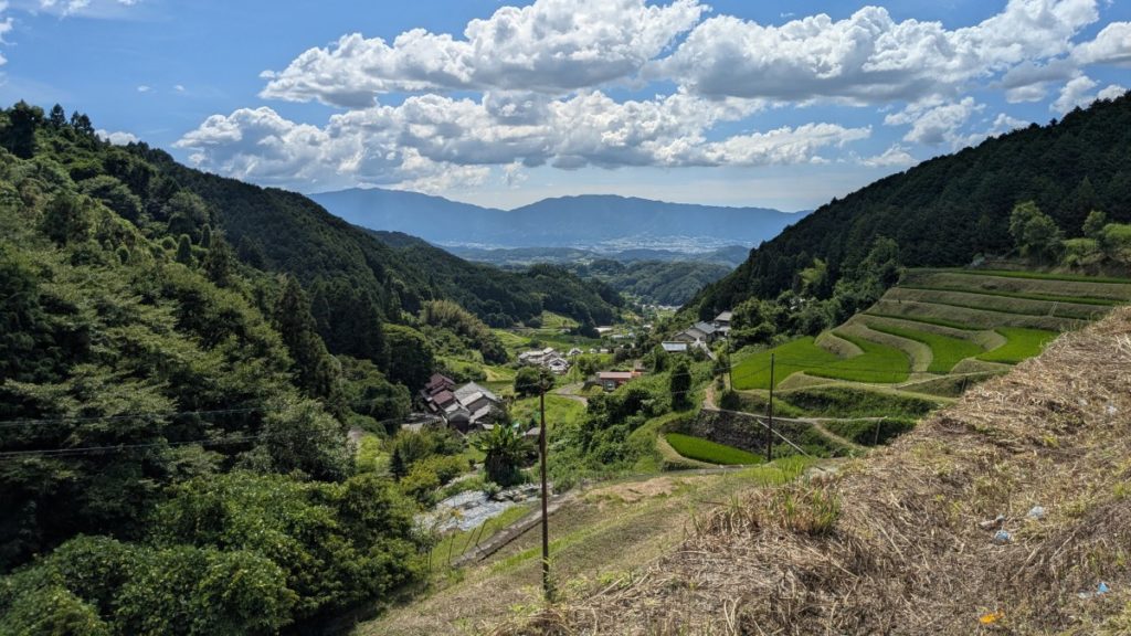 ヒルクライムを頑張ろうと、ふもとから自転車で登っていきましたが、岩船や亀石などの飛鳥の石造物を見て回った疲れと、あまりの暑さに、すぐに自転車を押して上がることになりました。