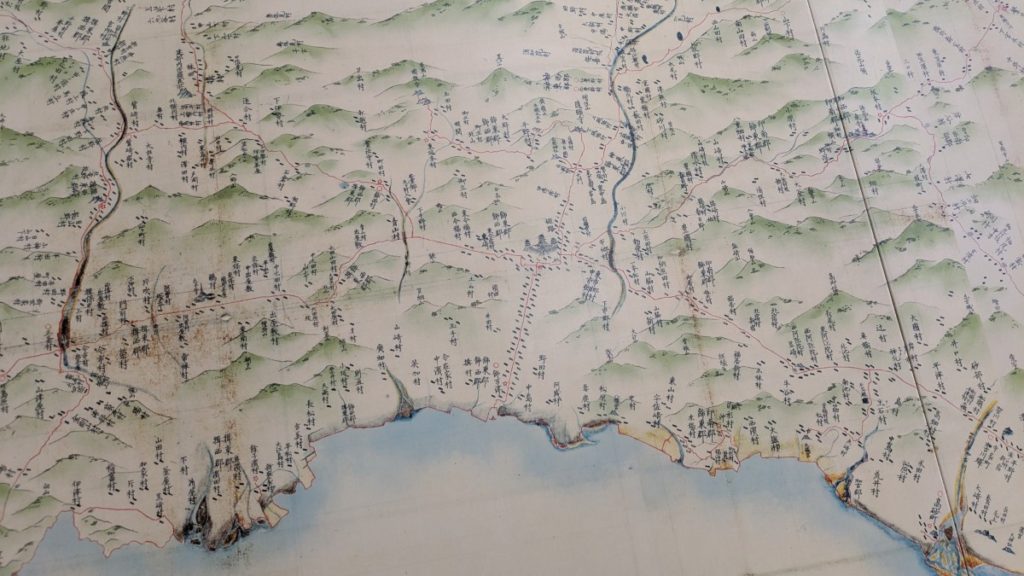 1階には伊能忠敬が作った日本地図のうち、近畿地方の図が原寸大で展示されていました。