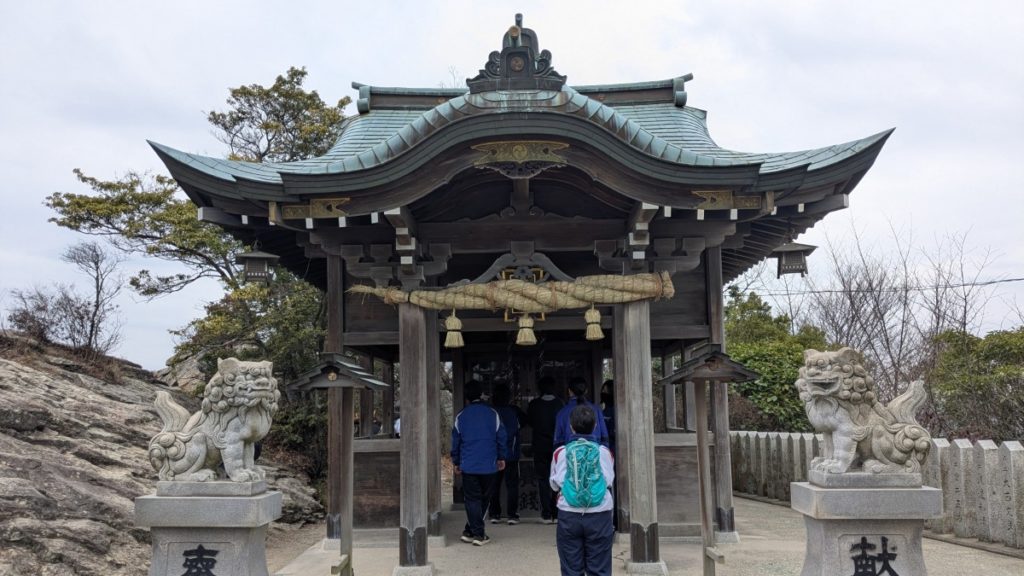 「あと300m」、「あと100m」の標識を通り過ぎて、山頂の高御位神社に到着しました。