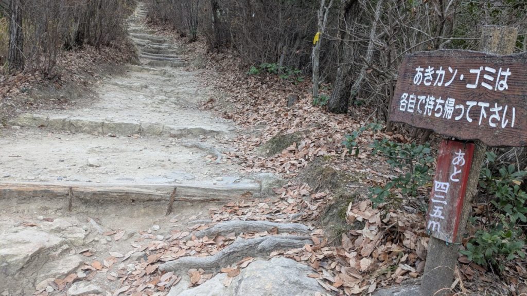 この成井登山道はほとんど階段で、非常に歩きやすい道でした。