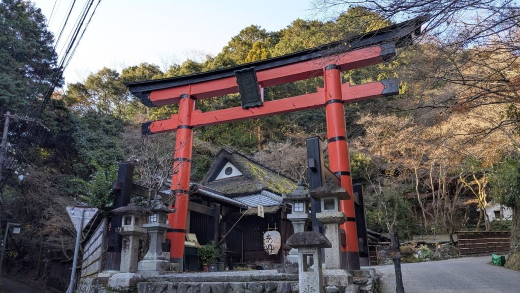 あだし野念仏寺から歩き続けると大きな赤い鳥居が見えてきました。