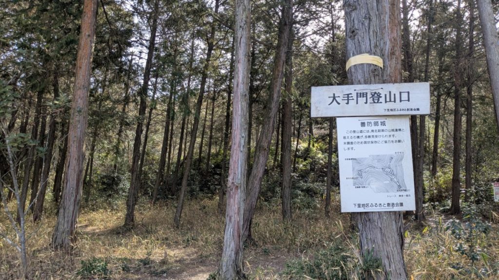善防山城に登ってきました。標高251メートルの善防山に築かれた城です。登山口はいくつかあるようですが、今回は善防公民館の前にある大手門登山口から登りました。