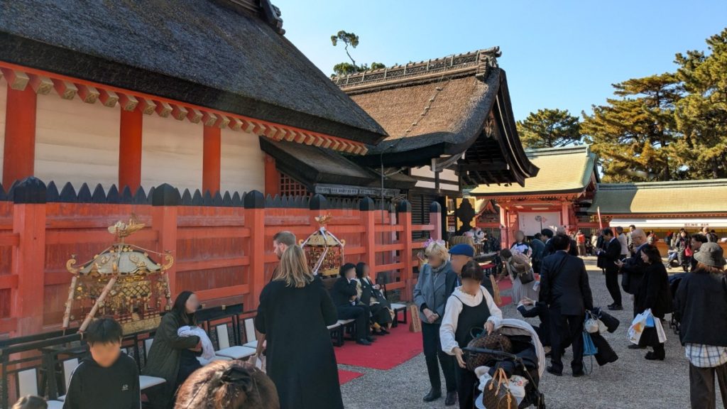 七五三まいりやお宮参りに来られているご家族でにぎやかでした。