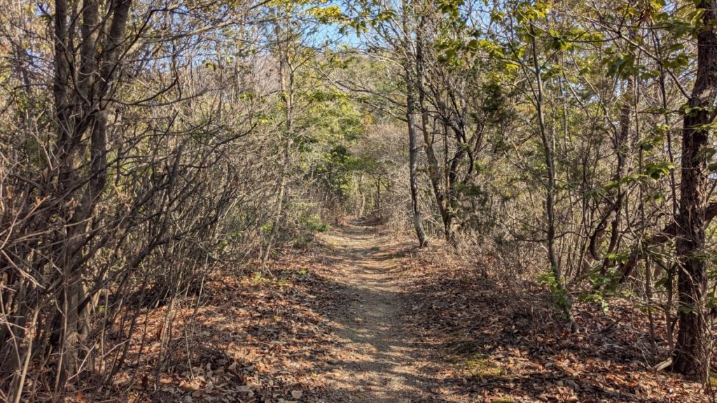 登山道としては東尾根コース、西尾根コース、そして北側から登るそうめん滝コースの3つがあります。今回は増井山自然公園登山口からの東尾根コースを選びました。