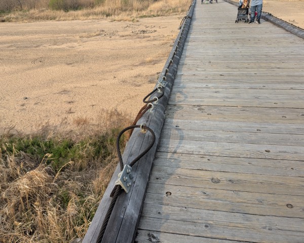- 橋桁と橋板はワイヤロープで橋脚に固定されているので、流されてしまわない。